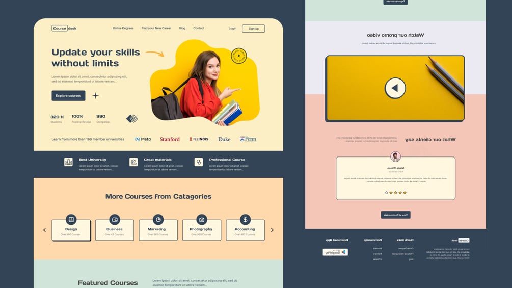 Your will get professional Figma UI template for Online Education, E-learning or Distance Learning