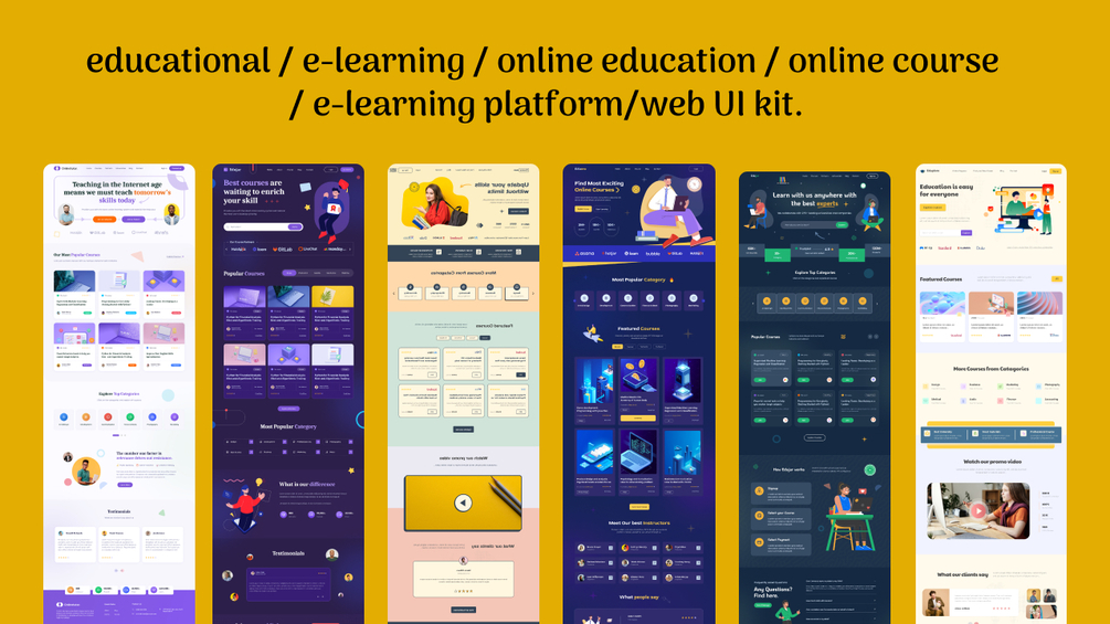 Meet our new 6 e-learning platform website UI template! You will get 6 modern Light & dark versions of the Website templates for educational/e-learning/online education/online course/e-learning platform/web UI kit.